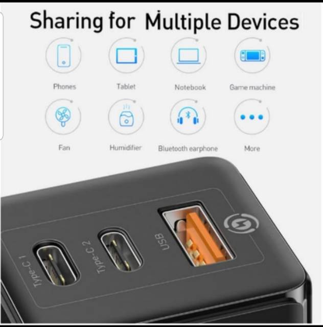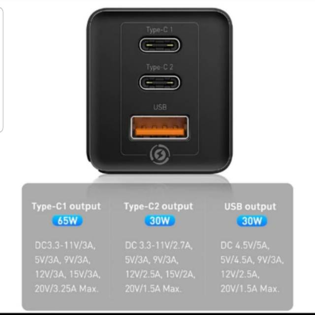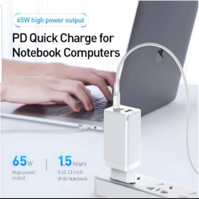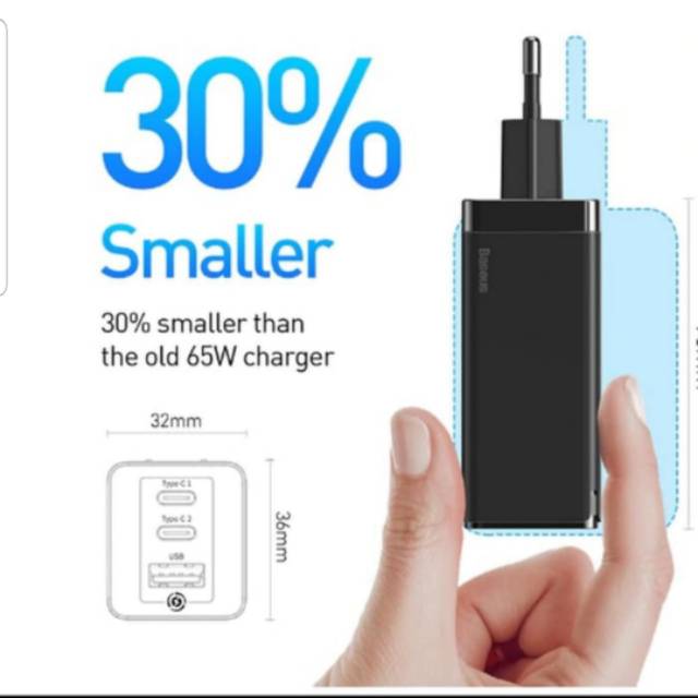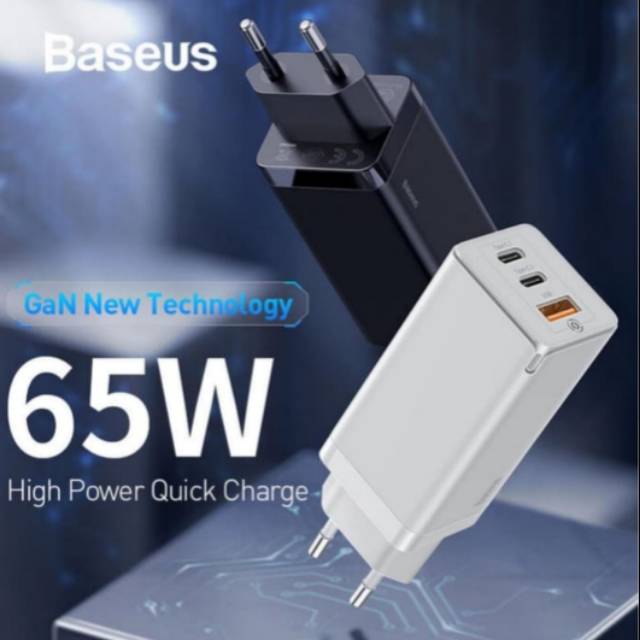 Adaptor Kepala Charger Baseus Gan 65w 65 watt Supercharge Quick Charge Vooc with usb type C Original