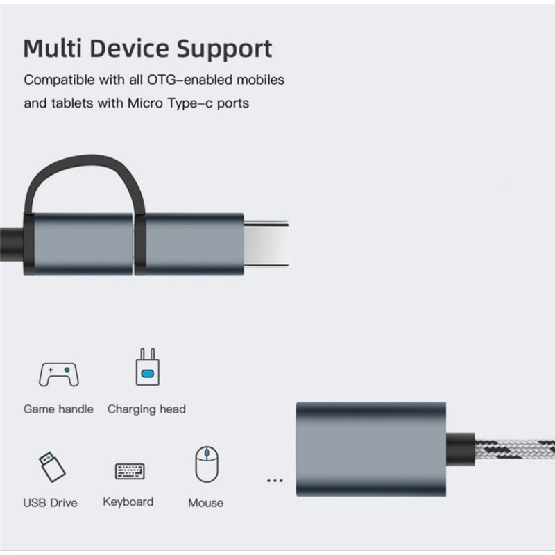Adaptor OTG 2in1 USB Micro & Type-C / Kabel OTG Micro / Kabel OTG Type-C / Penghubung Data TypeC / OTG Metal TypeC / Micro