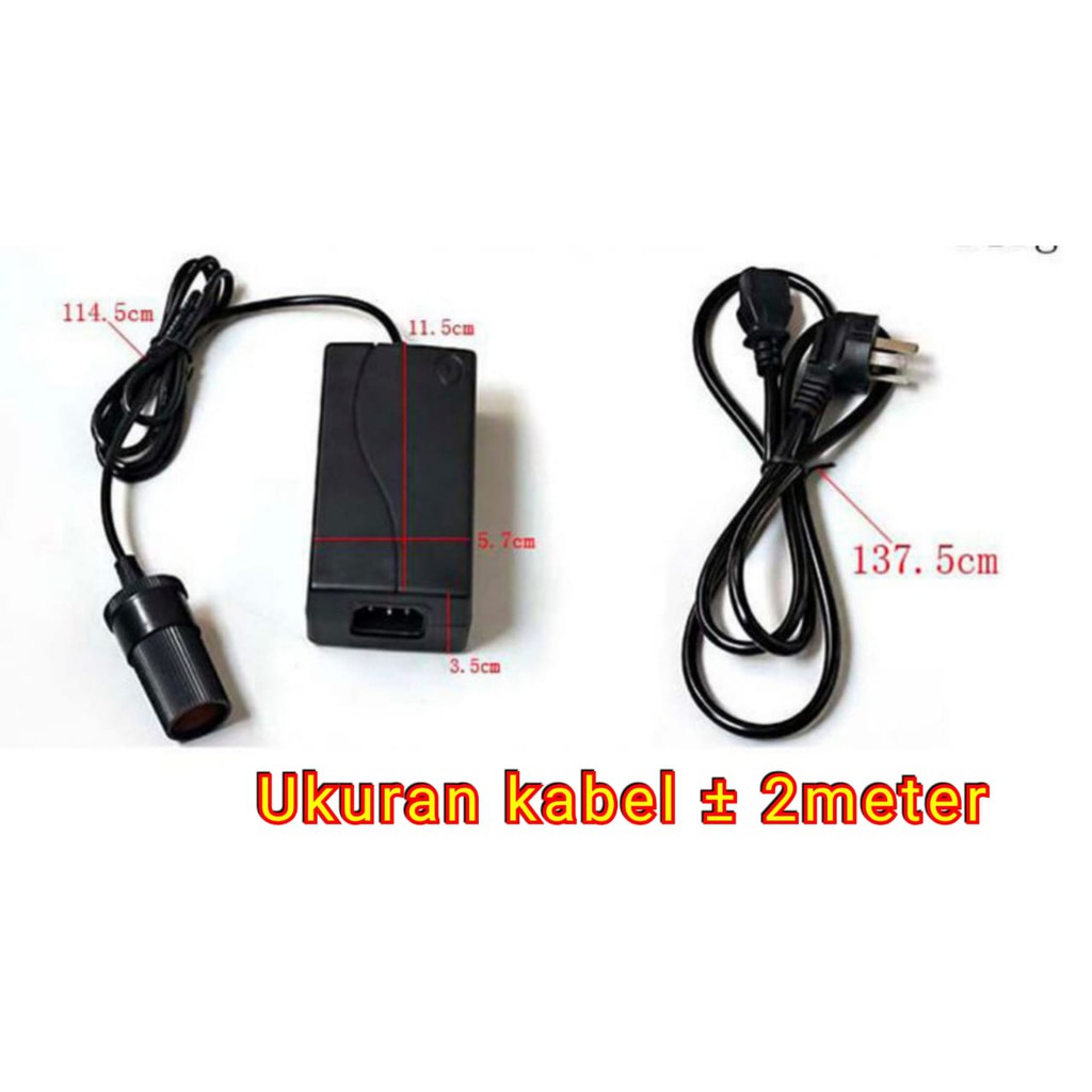 Adaptor With Car Lighter Socket, Adaptor AC ke DC - konverter mobil colokan ke listrik rumah DC 12volt 60watt