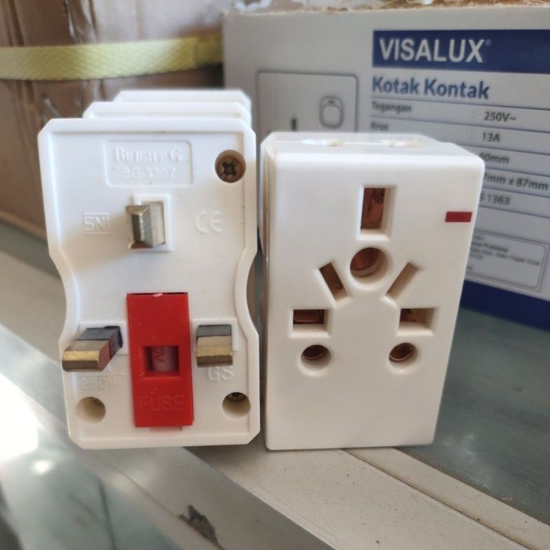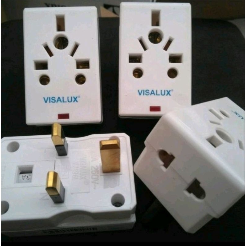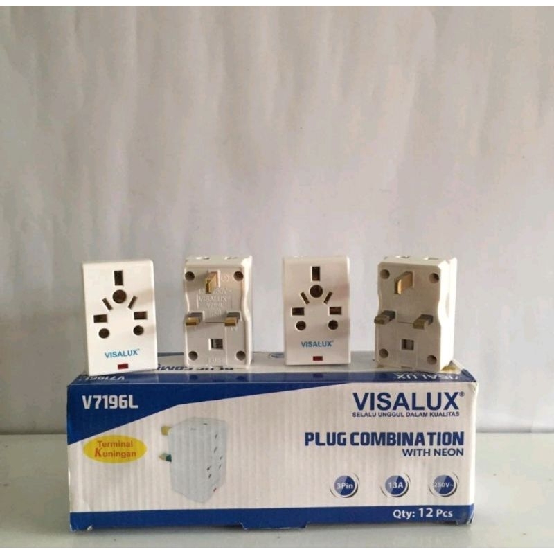 Adaptor kombinasi colokan kaki 3 kaki 2 / plug combination visalux SNI ada lampu