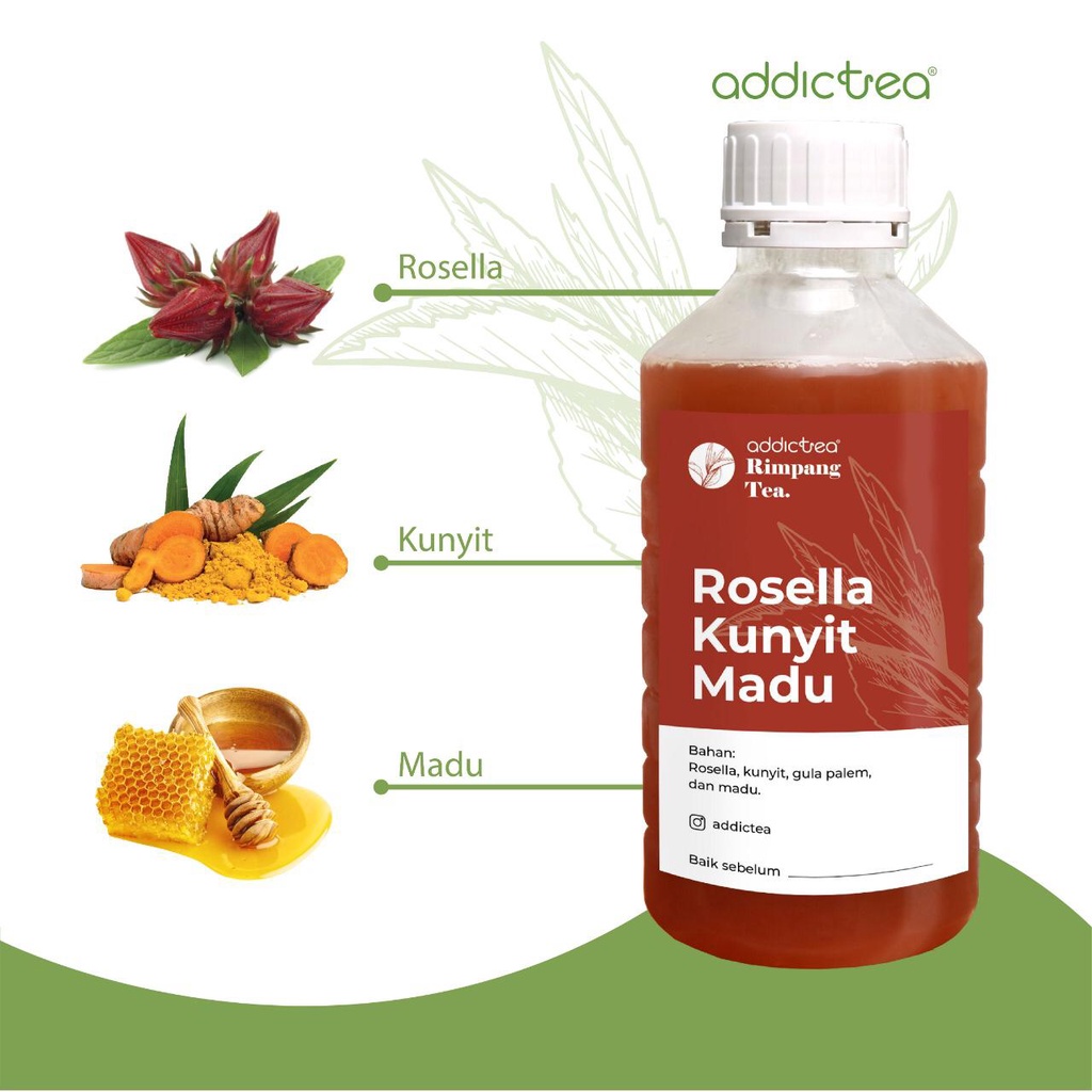Addictea Jamu Rimpang Minuman Botol ( Sereh, secang, rosella, kunyit, lemon) 1 Liter-240 ml