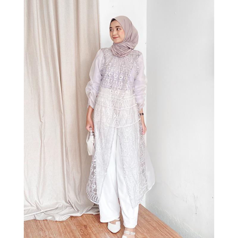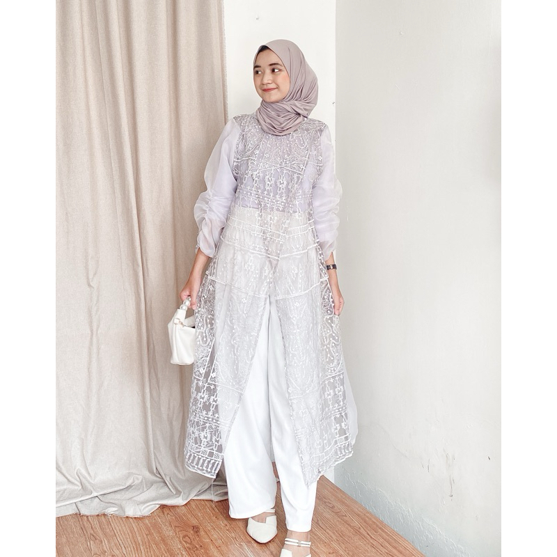 Adelia Long Outer | Raya Series | Outfit Lebaran | Outfit Idul fitri | Kondangan | Outer | Organza Tile Bordir