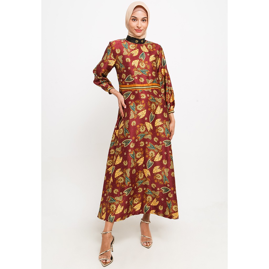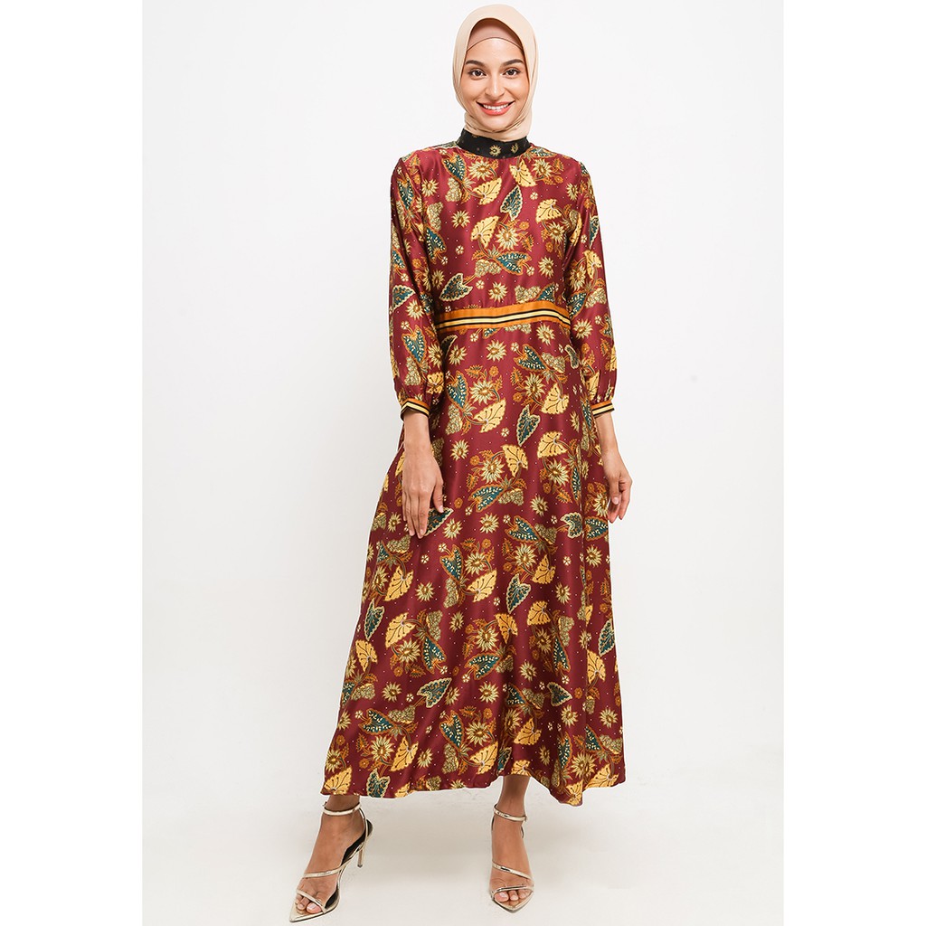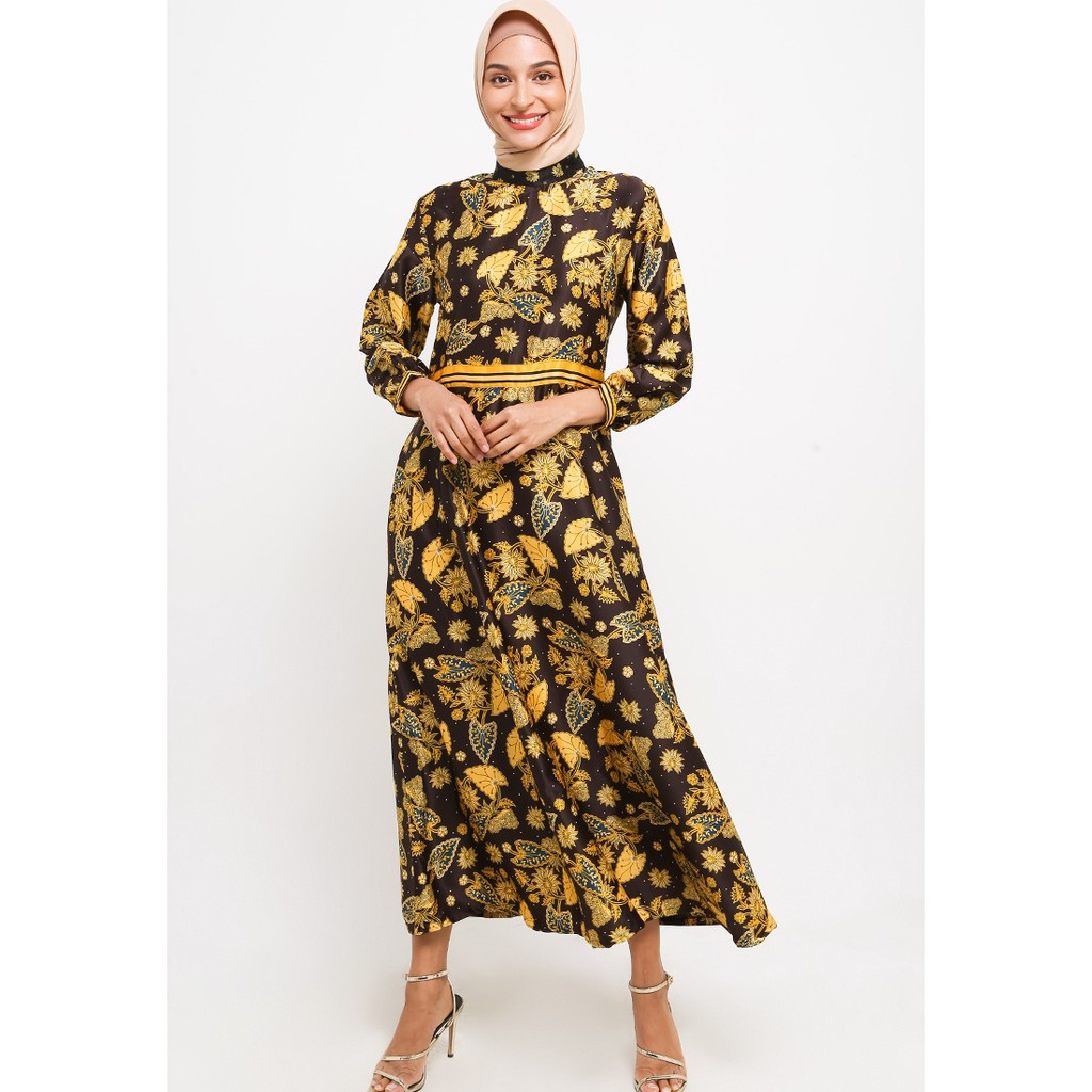 Adikusuma Gamis Wanita Muslim Batik Daun Keladi