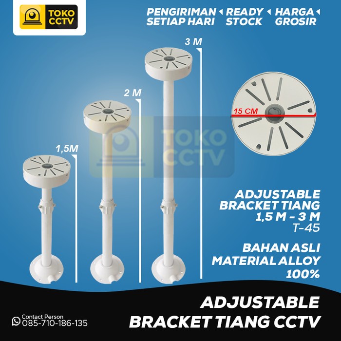 Adjustable Bracket Tiang CCTV Outdoor, Panjang Bracket Tiang 1,5M - 3M