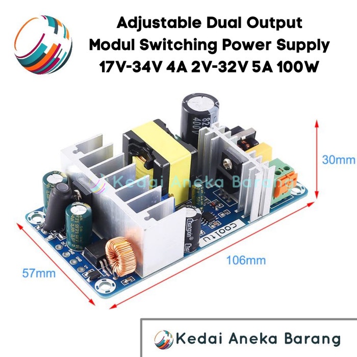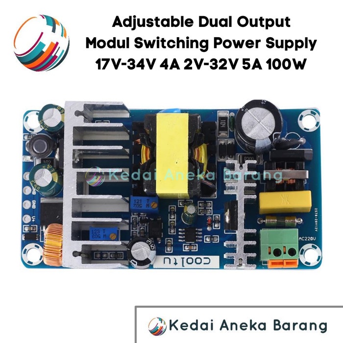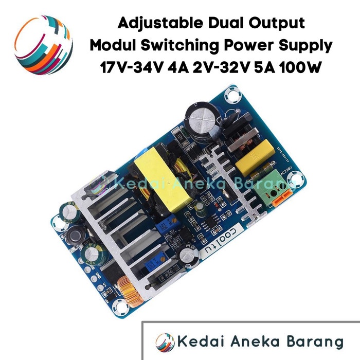 Adjustable Dual Double Dobel Output Ganda Module Modul Switching Power Supply SMPS PSU 2V-34V 24V 100W AC-DC AC - DC Adaptor Adapter PCB Board