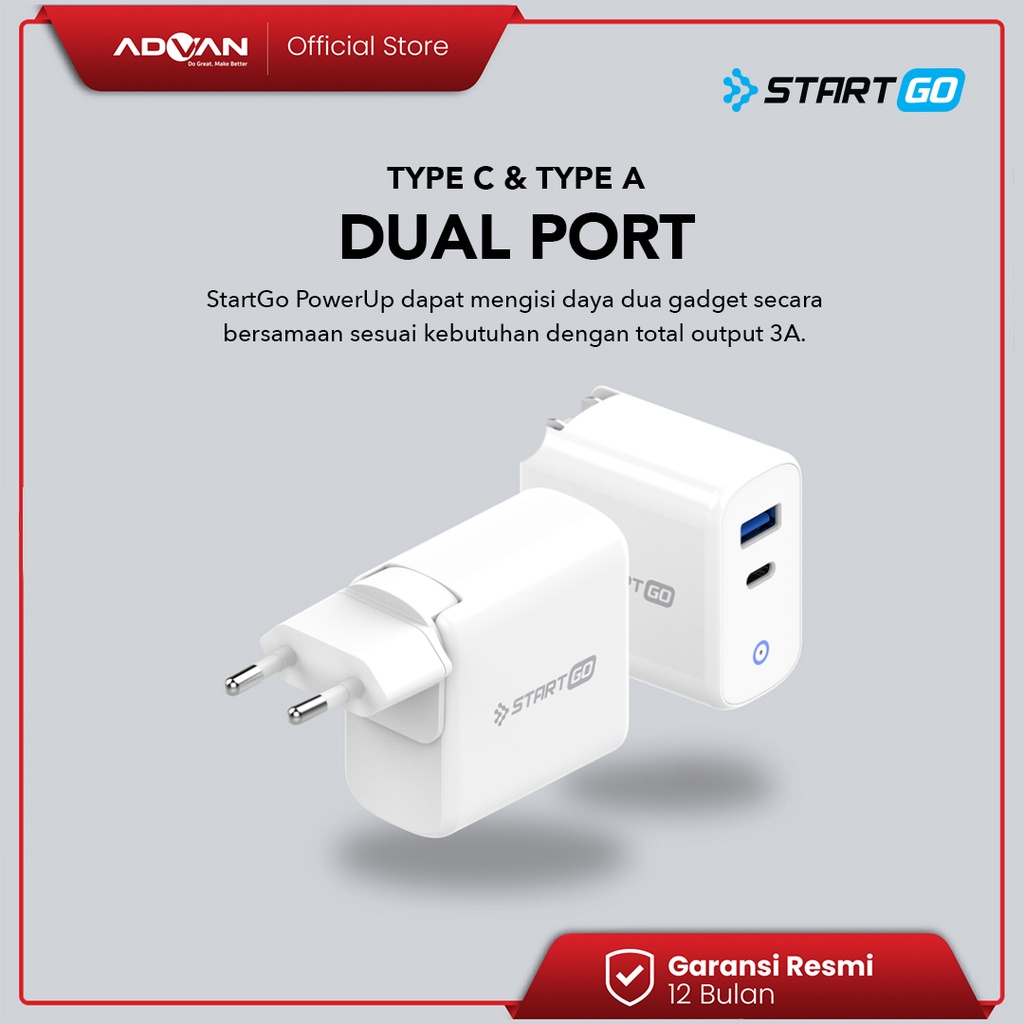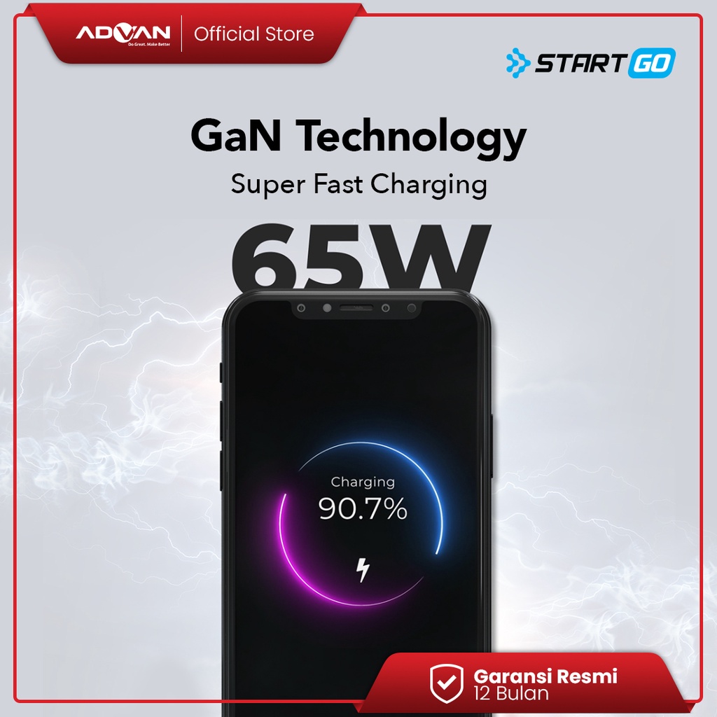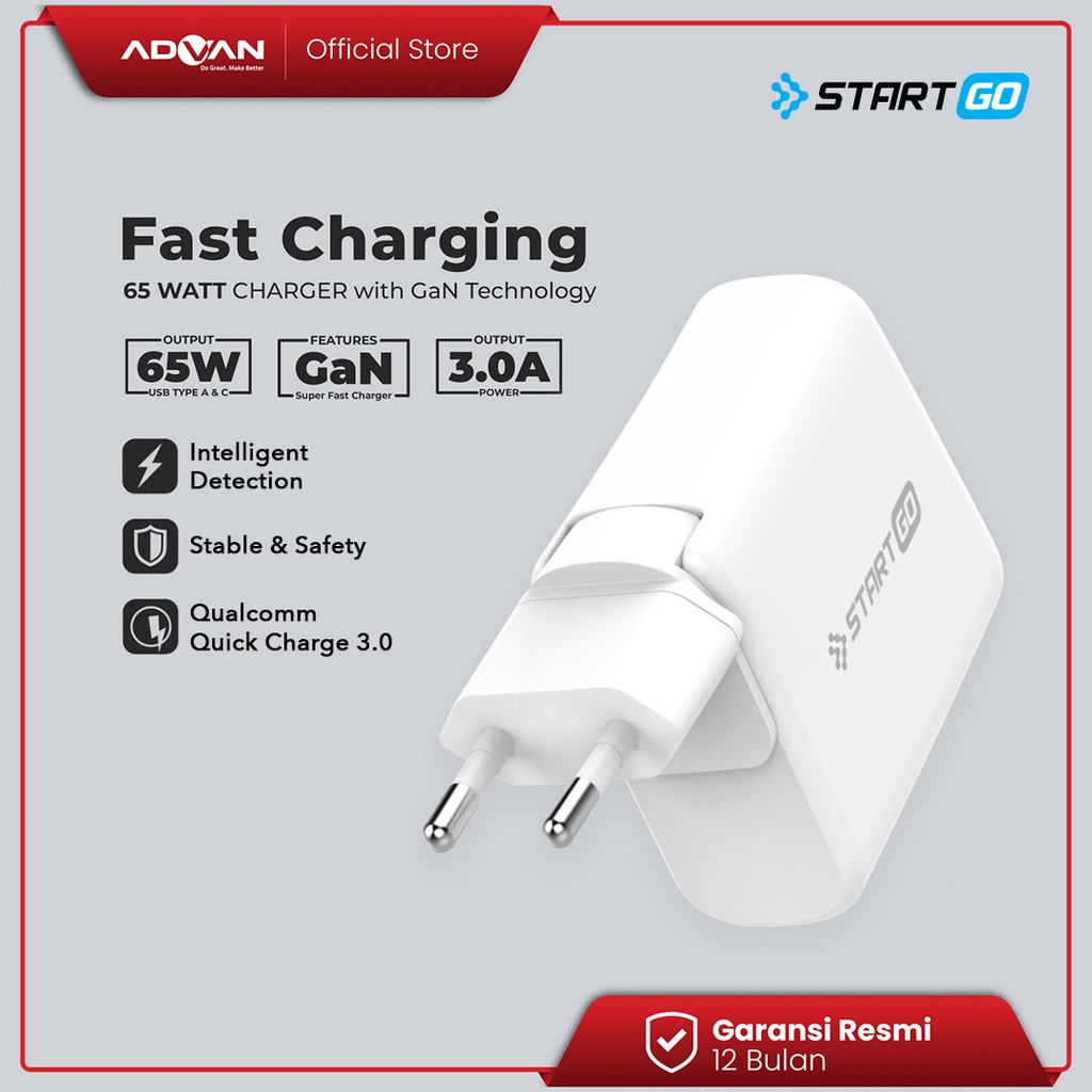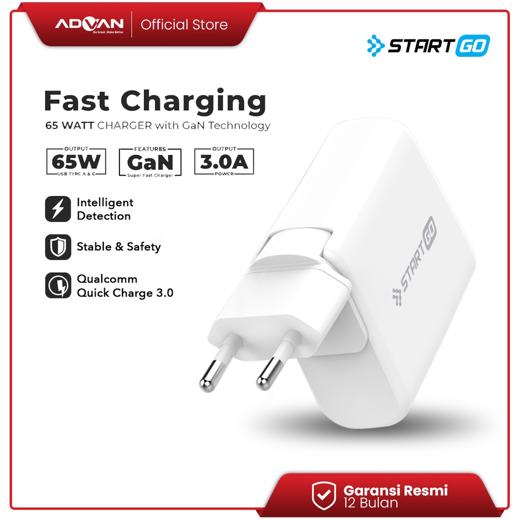 Advan StartGo GaN Charger 65W Fast Charging Dual Port PD 3.0 POR