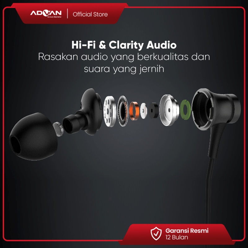 Advan StartGo In-Ear Earphone Headset E1 Super Bass - Black
