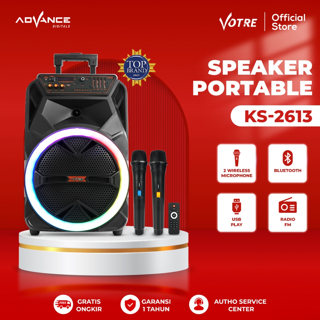 Advance KS-2613 Speaker 12" Portable Free 2 Mic Wireless Karaoke Garansi Resmi 1 Tahun