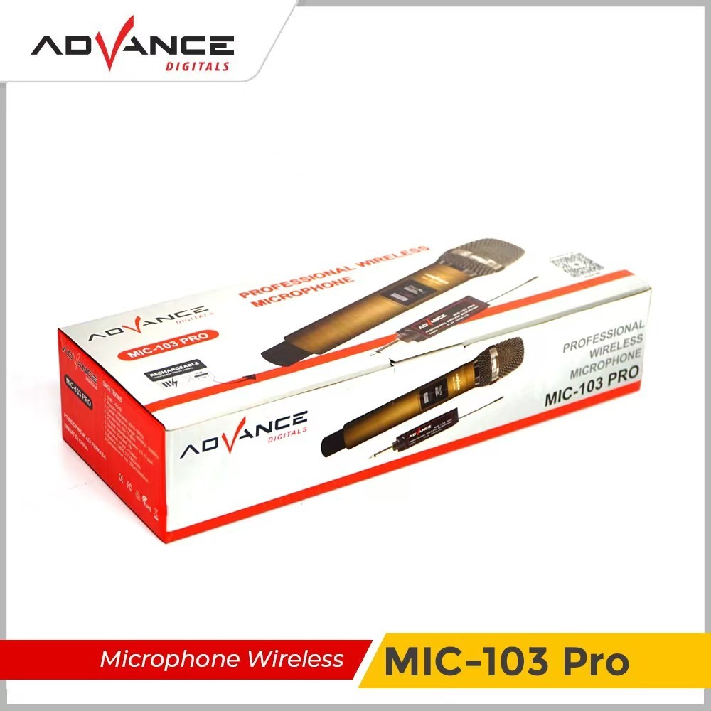 Advance MIC-103 Pro Professional Wireless Microphone Bluetooth Karaoke 2 Free Batteries