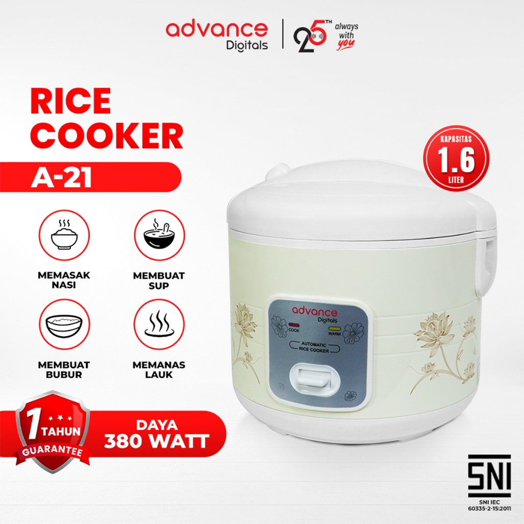 Advance Rice Cooker A12 Penanak Nasi 350 watt Kapasitas 1.2 Liter Anti Lengket Garansi 1 Tahun