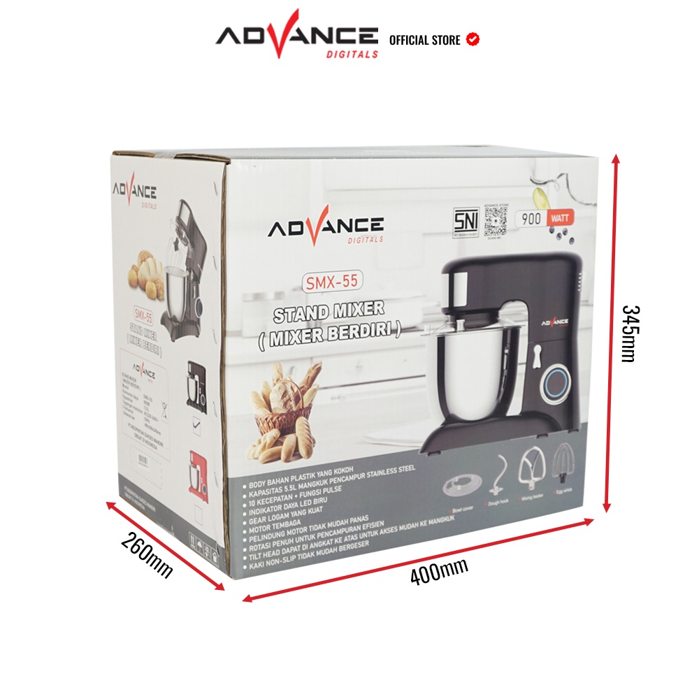 Advance SMX 55 Standing Mixer 5,5 Liter mixer Adonan RotiAdonan Mixer Tepung Mixer SMX-55 Eggbeater With Stand Pengocok