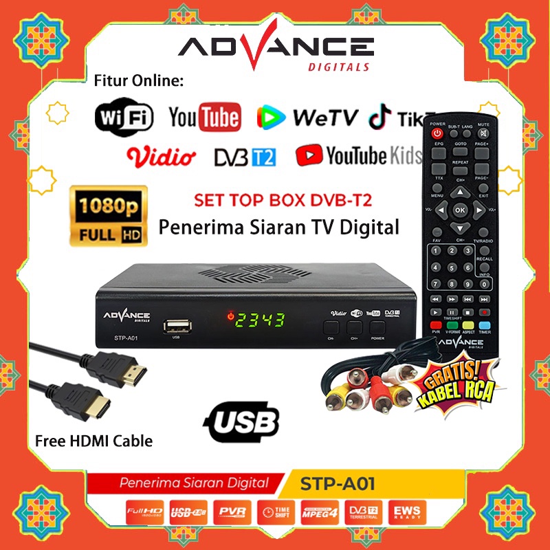【Garansi 1 Tahun】 Advance STP-A01 Set Top Box TV Digital Receiver Full HD STB Wifi/Youtube/DVB-T2 Receiver Penerima Siaran(Hadiah gratis)