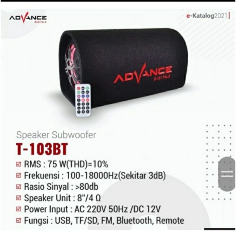 Advance T-103 BT Speaker Bluetooth 8" inch Portable AC DC Subwoofer T103 BT