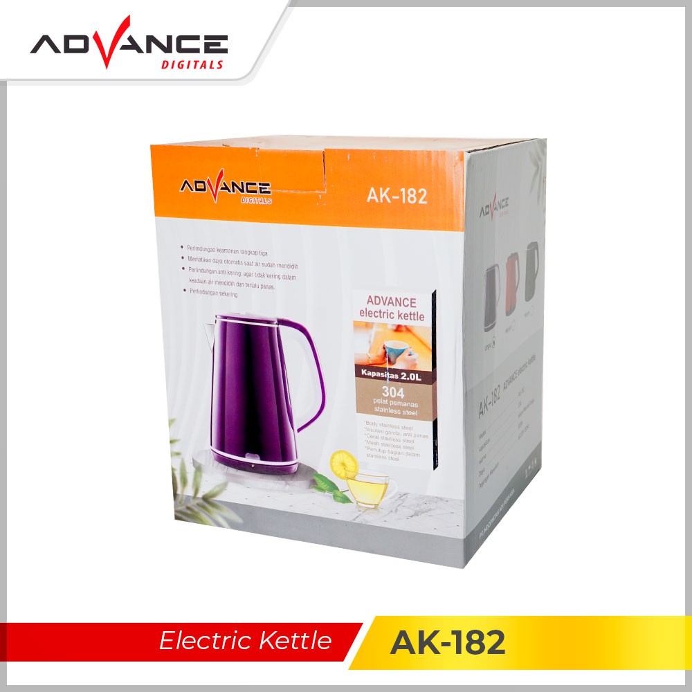 Advance AK182 Teko Listrik 2 Liter Tahan Panas Cepat Panas 500 Watt Garansi Resmi 1 Tahun