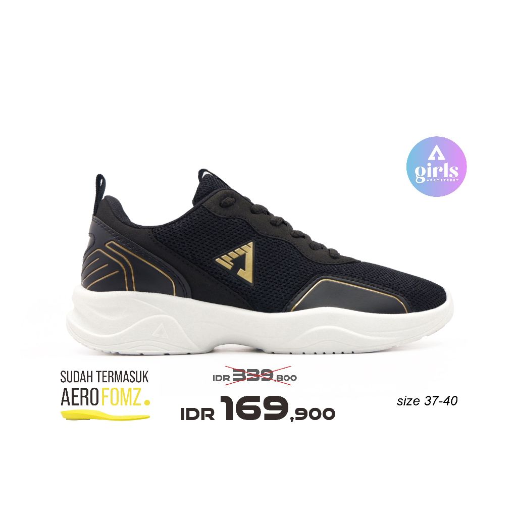 Aerostreet 37-40 Jennie Putih Hitam Emas - Sepatu Sneakers Casual Pria Wanita Aero Street 21II16