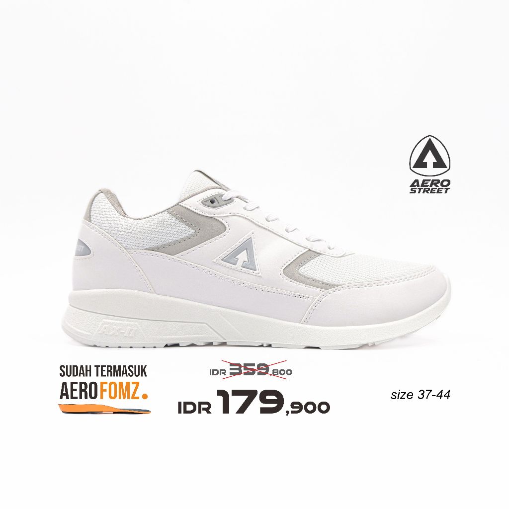 Aerostreet 37-44 Osaka Putih Putih Abu Muda - Sepatu Sneakers Casual Pria Wanita Aero Street 21HH20