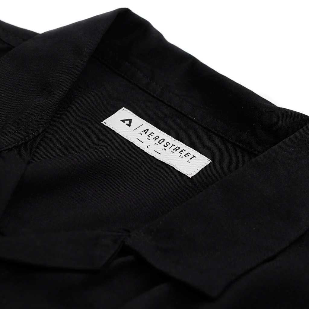 Aerostreet Kemeja Rayon Marva Hitam Hawai Polos Gelap Pria Wanita QAAAA