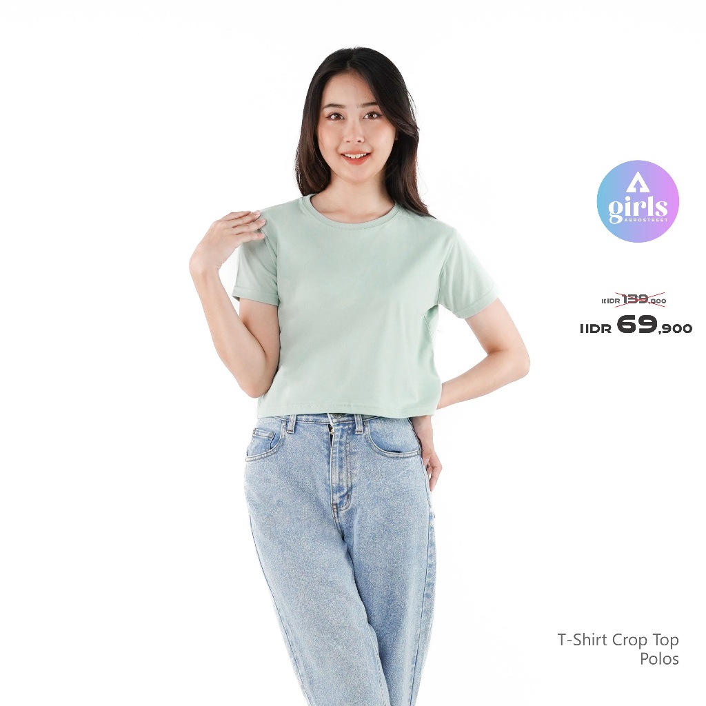 Aerostreet T Shirt Reguler Crop Top Polos Cerah Woman KBC01