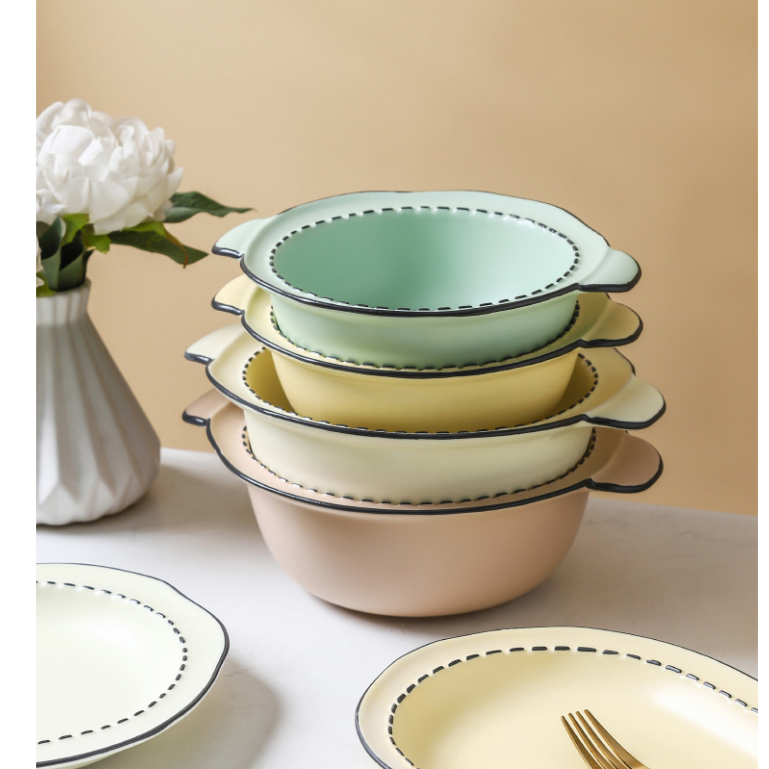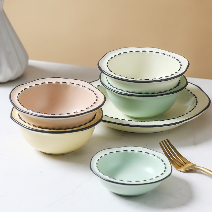 Aesthetic Pastel Rice Bowl Soup Bowl Plate Saucer In Stripe / Piring Mangkok Estetik Pastel / Tempat Saus Estetik / Aesthetic Saucer / Aesthetic Soup Bowl / Aesthetic Rice Bowl / Aesthetic Plate / Cafe Plate