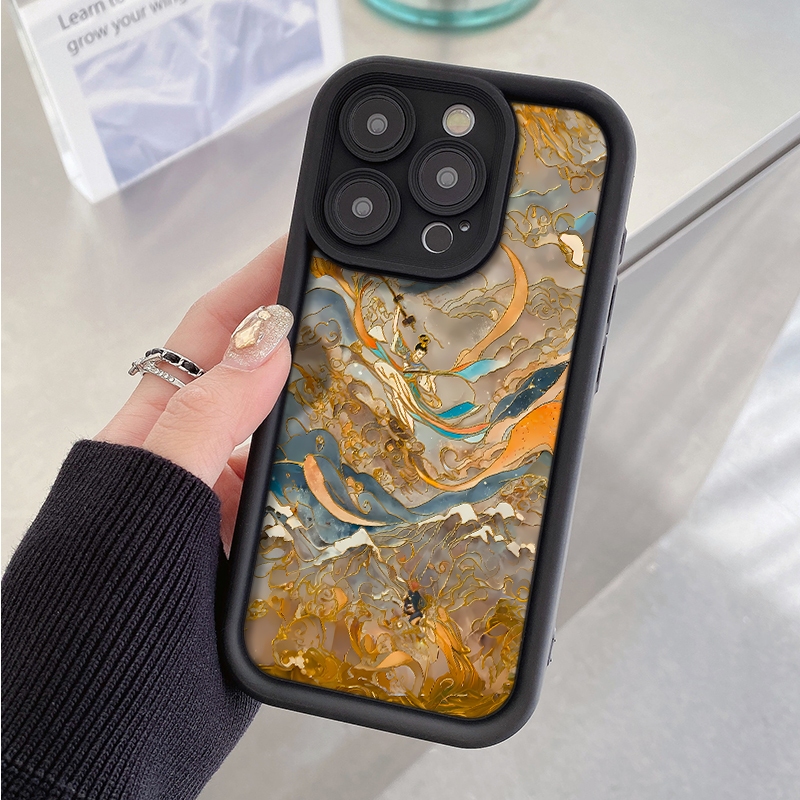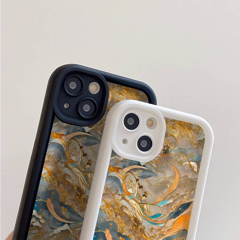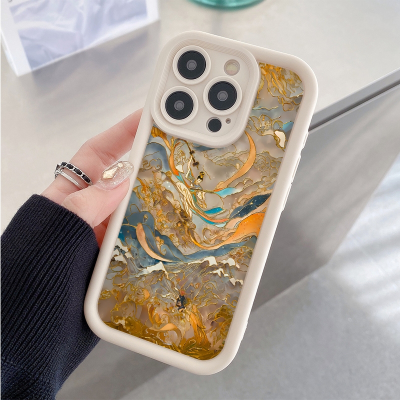 Aesthetic unik lukisan batik casing hp untuk iphone 13 12 mini 11 PRO 14 Plus 15 pro max 6 6s 7 8 plus antishock case x xs xr xsmax Silikon Softcase antigores cassing estetik S004