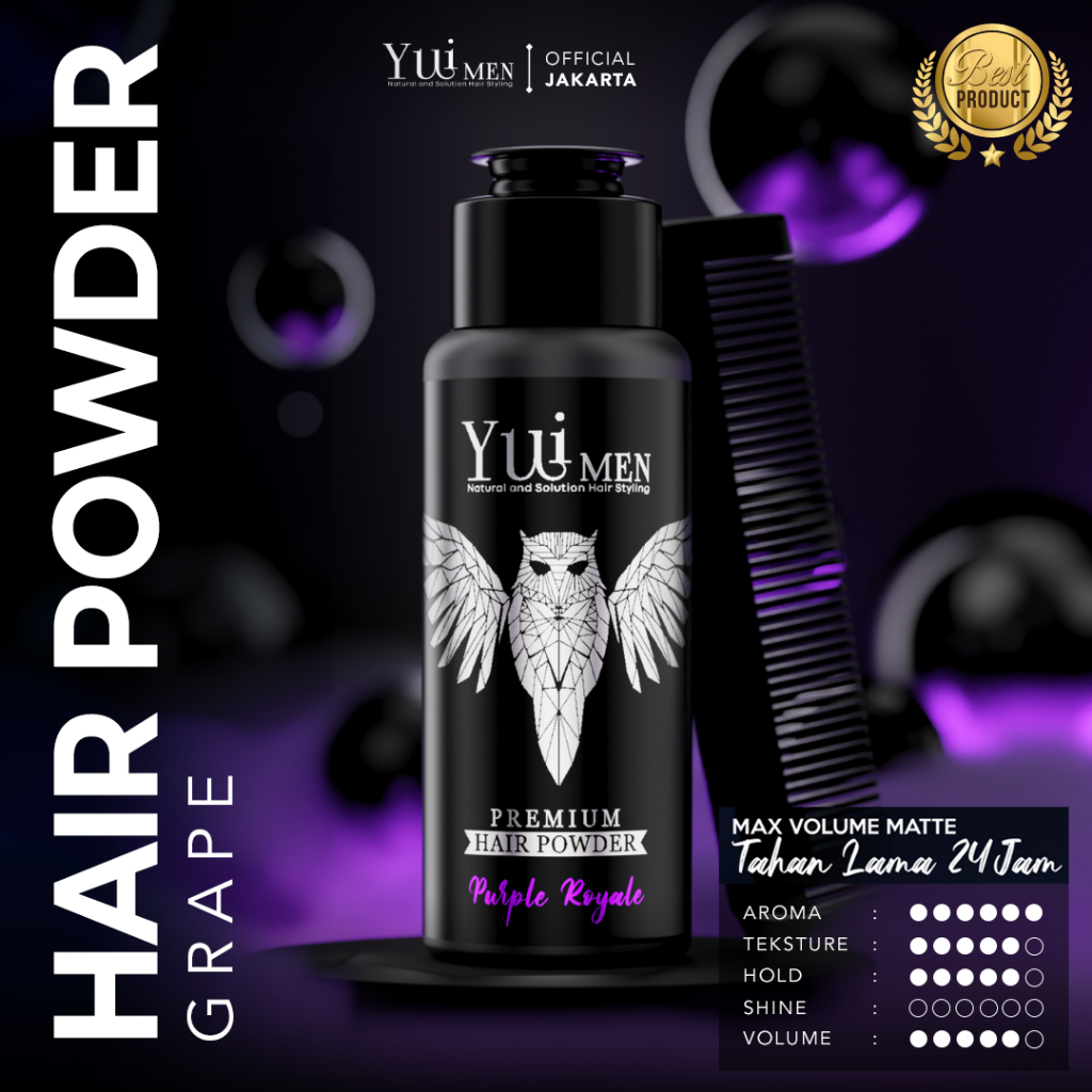 YUIMEN HAIR POWDER PREMIUM - AROMA GRAPE - GRATIS SISIR [ Natural and Solution Hair Styling ]