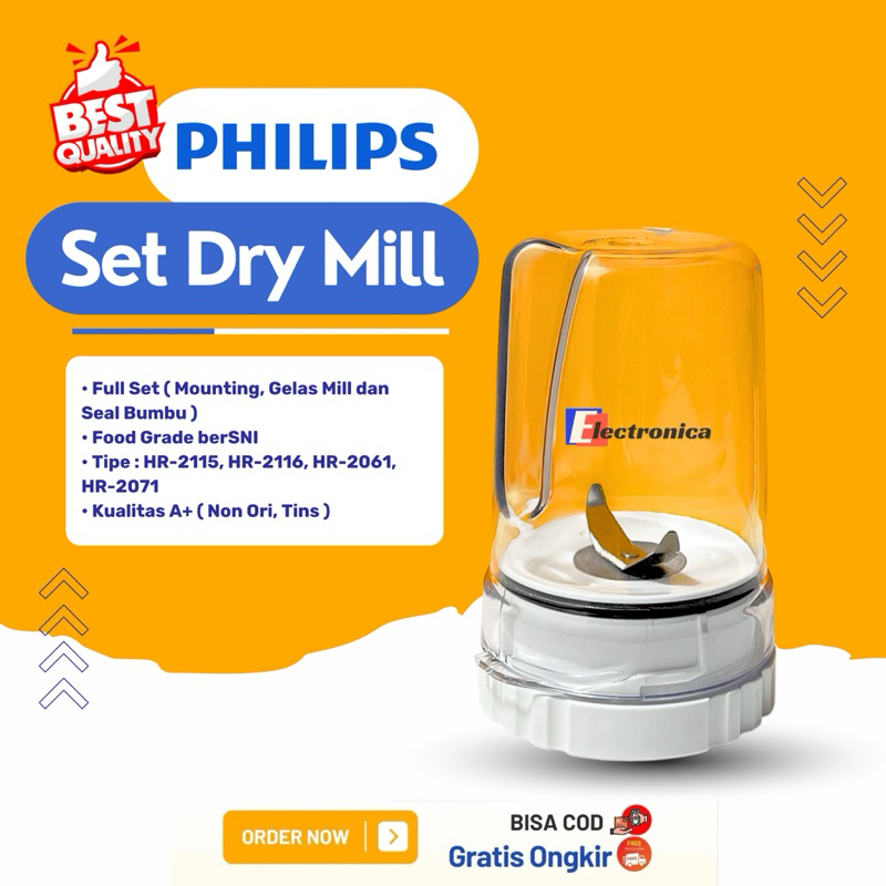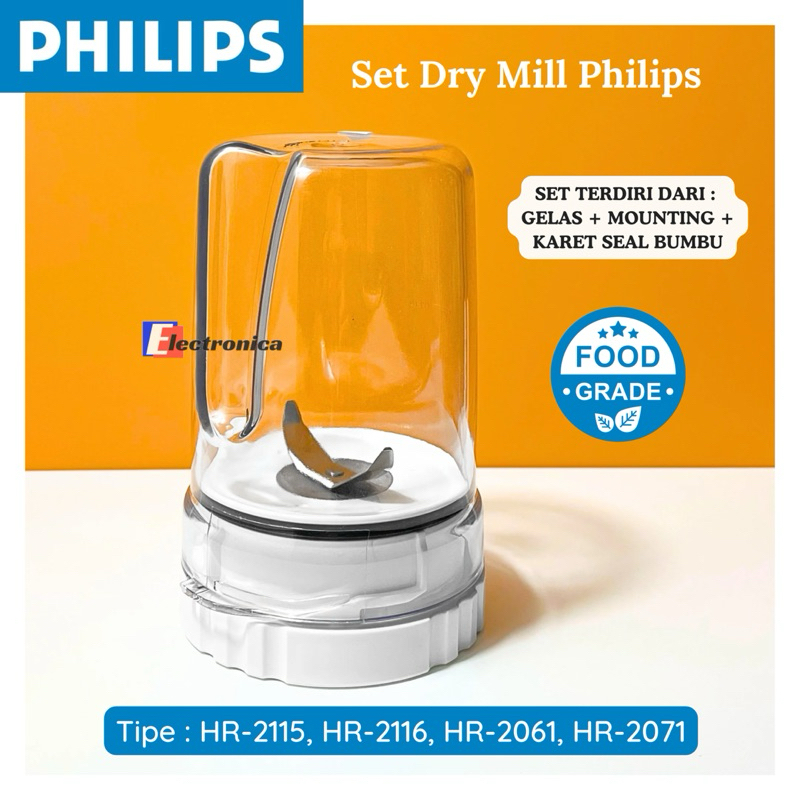 SET DRY MILL GELAS BLENDER BUMBU PHILIPS HR 2115 2116 2061 2071 / GELAS + PISAU BUMBU BLENDER PHILIPS WETMILL DRYMILL