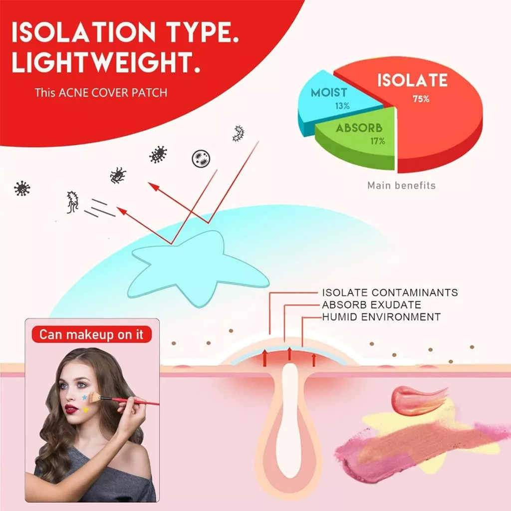 200pcs Acne Patch Lucu Bentuk Hati Bintang Sticker Jerawat Patch Invisible Hydrocolloid Heart Shaped Beauty