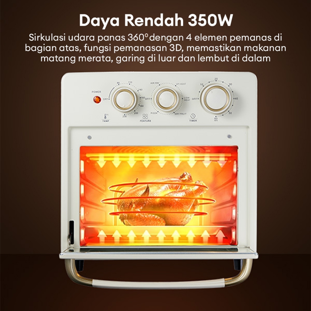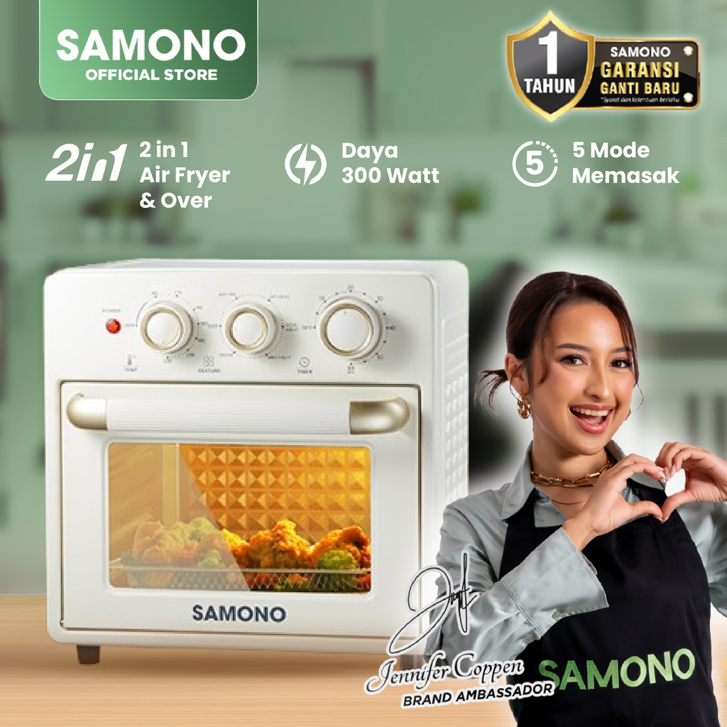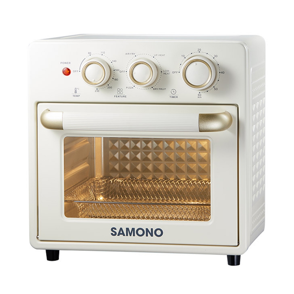 Air Fryer Oven SAMONO 18L Low Watt Oven Listrik 18 Liter Multifungsi Penggoreng Udara Tanpa Minyak Pemanggang Otomatis Serbaguna Kapasitas Besar Perlengkapan Dapur Estetik Murah Bergaransi Mesin Goreng Ayam Kentang Kue Tray Aksesoris Lengkap AFV18