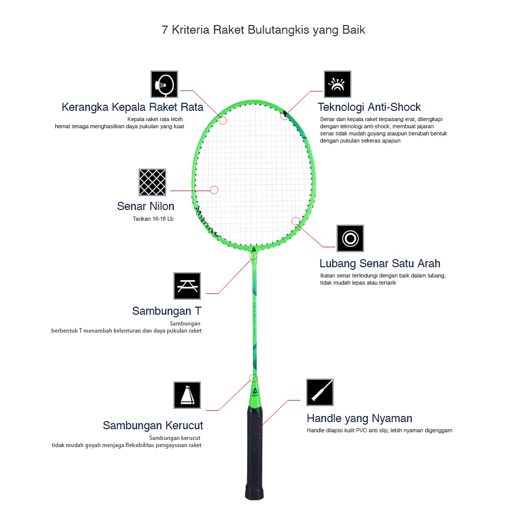 Agnite Badminton Racket / Raket Badminton / Raket Bulu Tangkis Hijau Isi 2 Gratis Tas Raket F2100