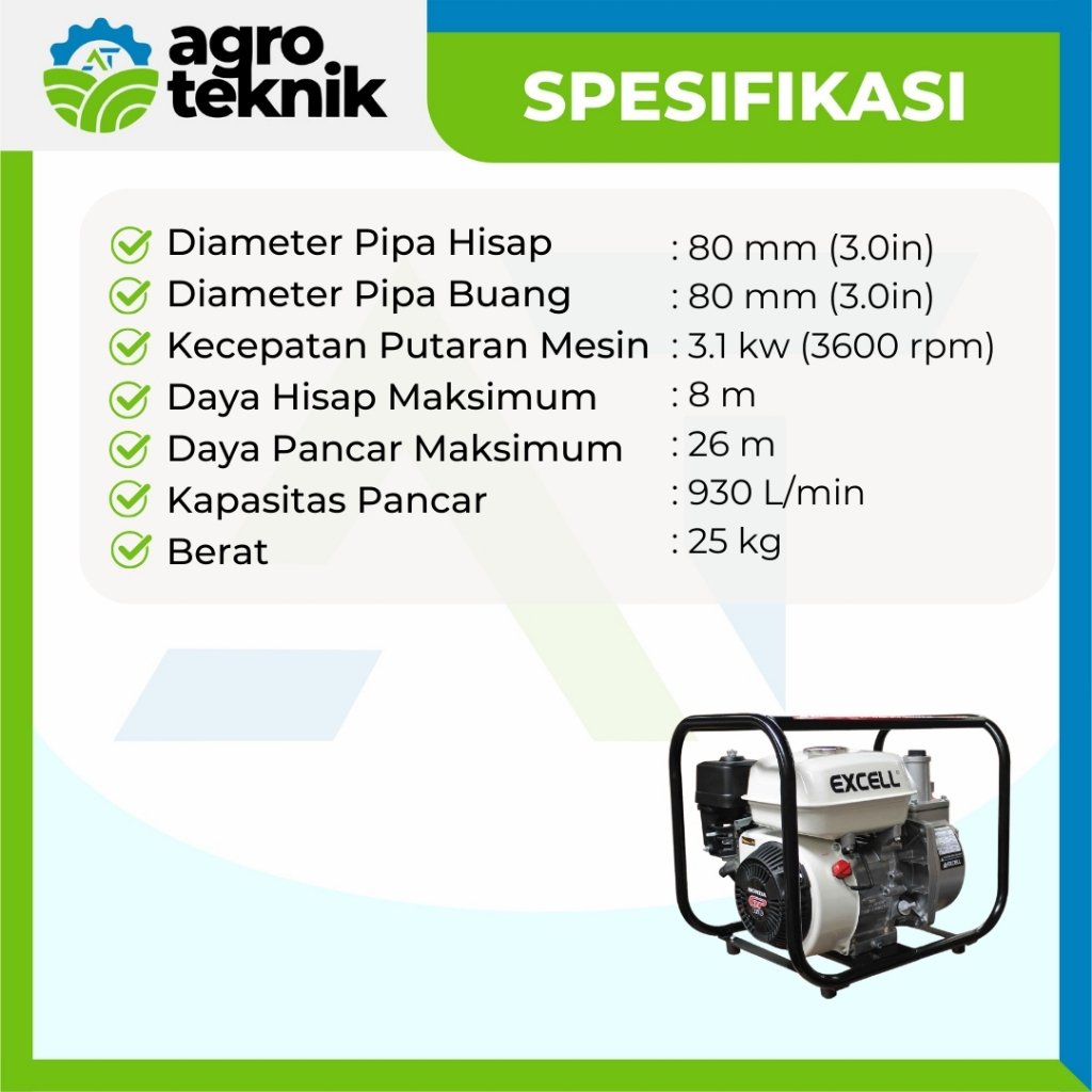 Agroteknik - Mesin Pompa Air Irigasi Waterpump Alkon 3 Inchi Honda Excell GWB80