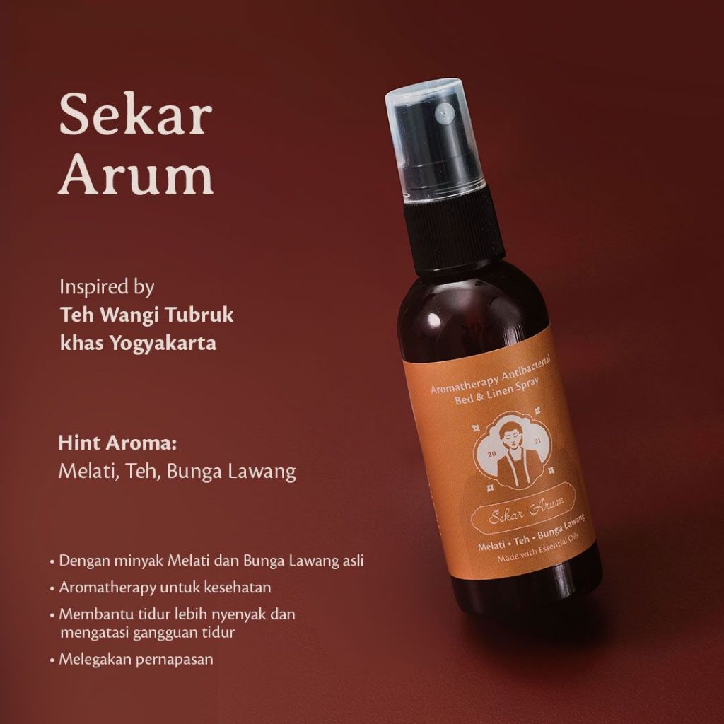 AiCARETHELABEL Sekar Arum Bed and Linen Antibacterial Spray aroma Teh Melati khas Yogyakarta