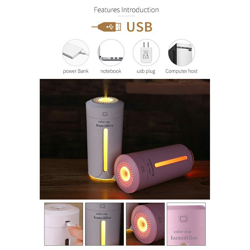 Air Color Cup Humidifier Ultrasonic Aromatherapy 230ml HUMI - SPT-001- Gray