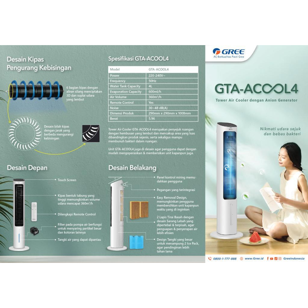 Air Cooler GREE Tower Fan Coller 4 Liter GTA ACOOL4 Aircooler Coler 4L