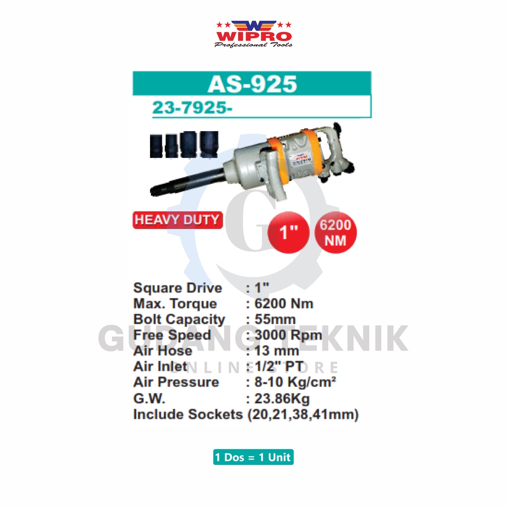 Air Impact Wrench 1" TWIN HAMMER Truck Heavy Duty WIPRO AS-925 / Alat Buka Pasang Baut Impact Wrench ANGIN 1 Inch Truk WIPRO AS925 - Alat Buka Baut Truck Angin WIPRO AS 925