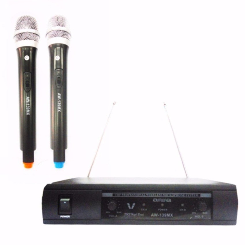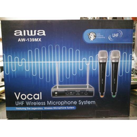 Aiwa Microphone / Mic AW 139MX Microphone Double Wireless UHF - Hitam