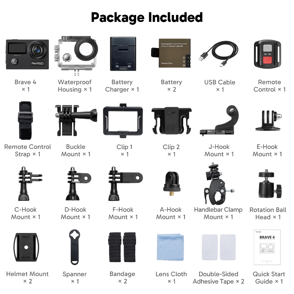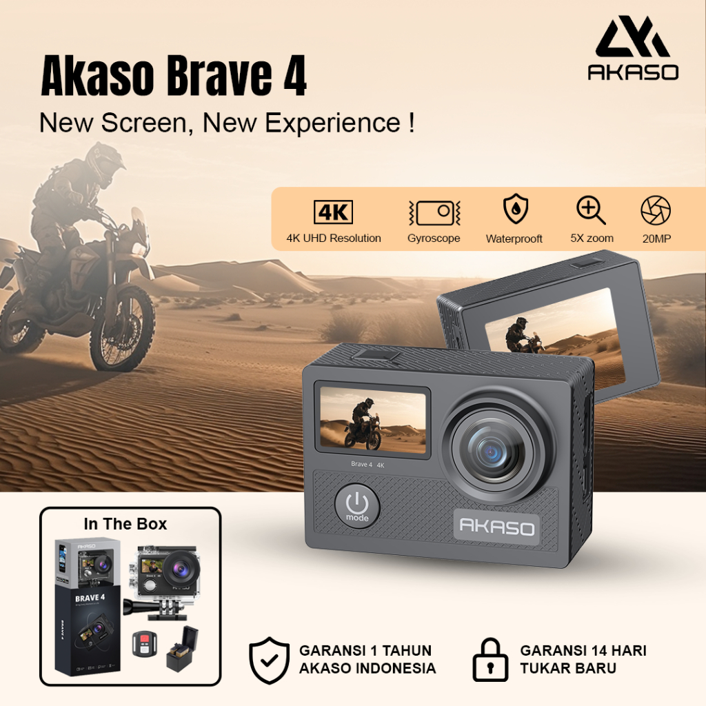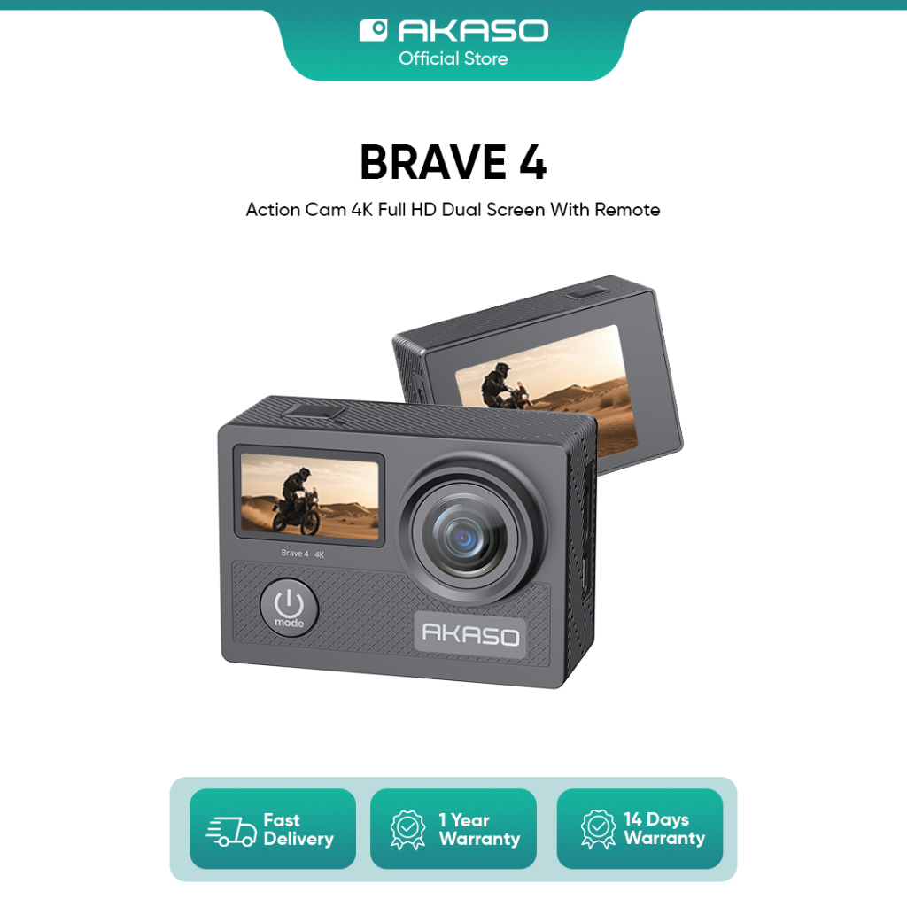 AKASO ACTION CAMERA BRAVE 4 NEW VERSION 4K FULL HD DUAL SCREEN WITH REMOTE