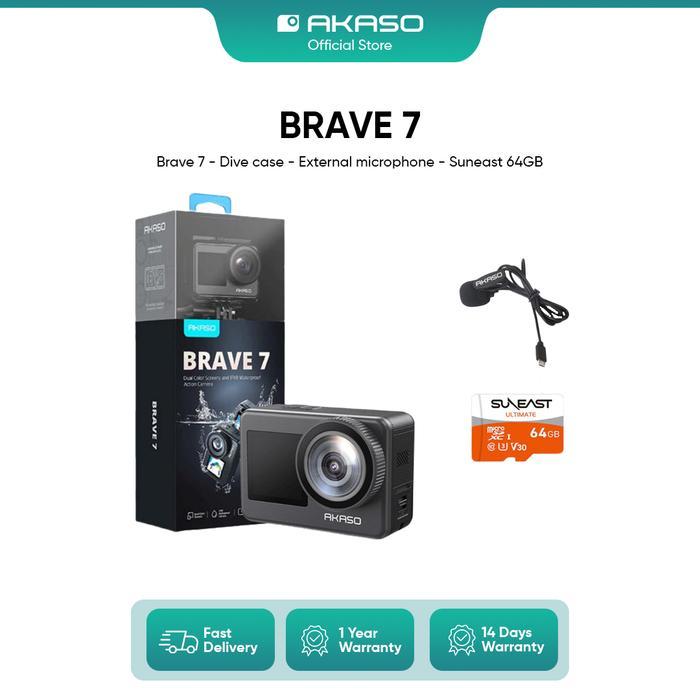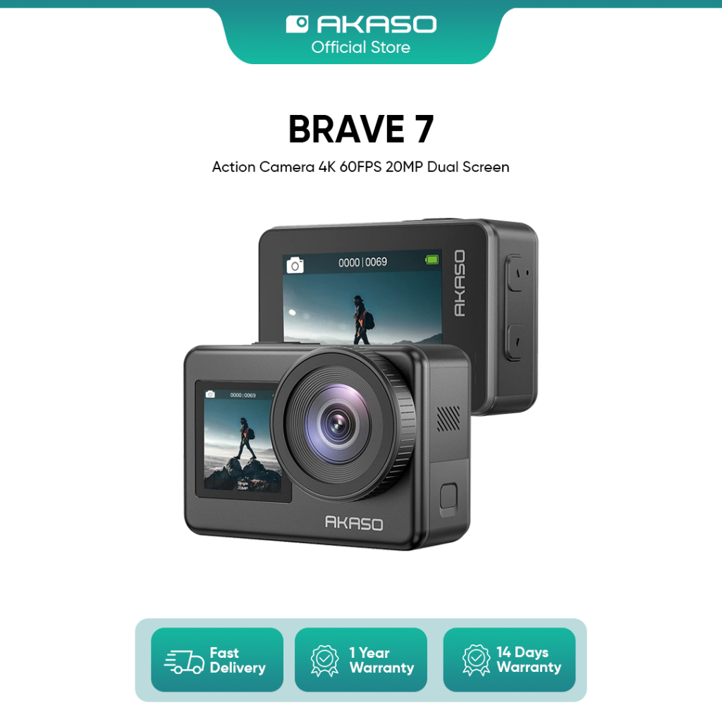 AKASO Action Camera Brave 7 New Version - 4K 60FPS 20MP Sony IMX458 1/3.06" CMOS Dual Screen With Remote