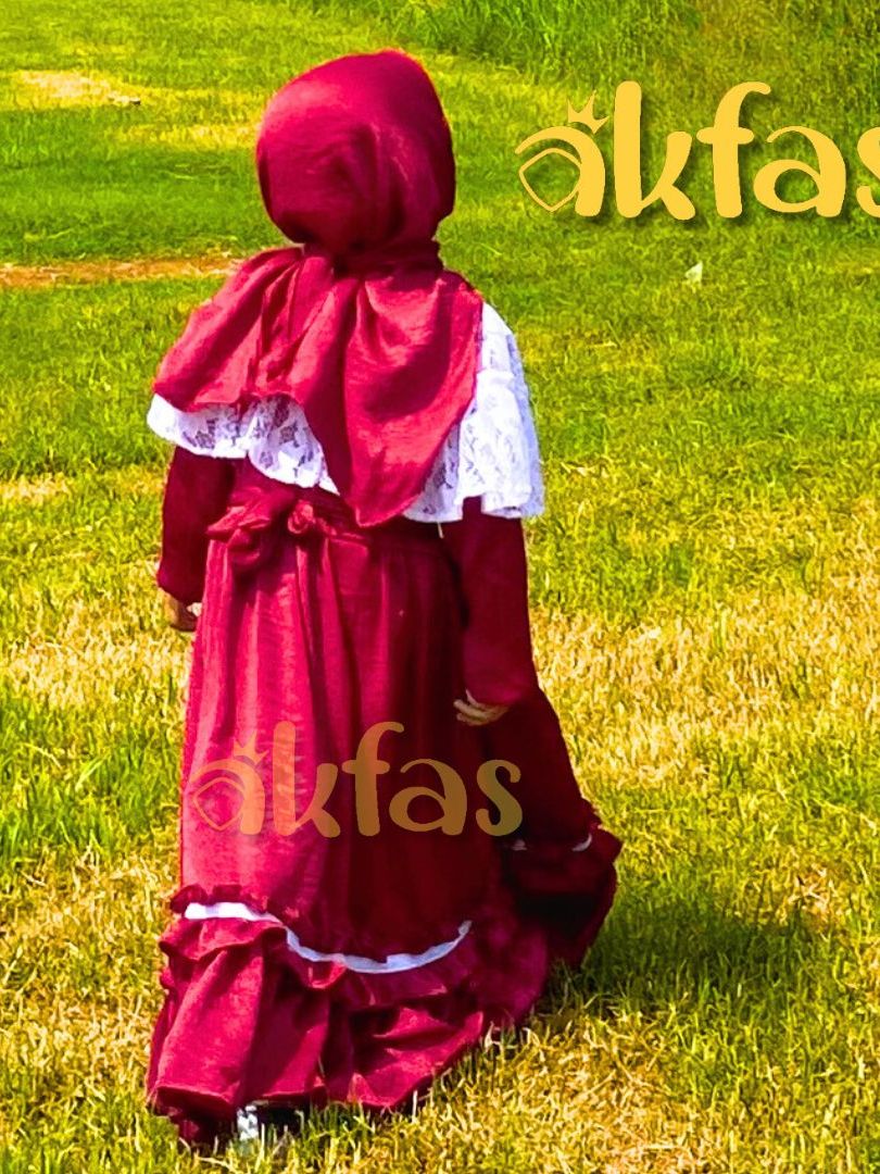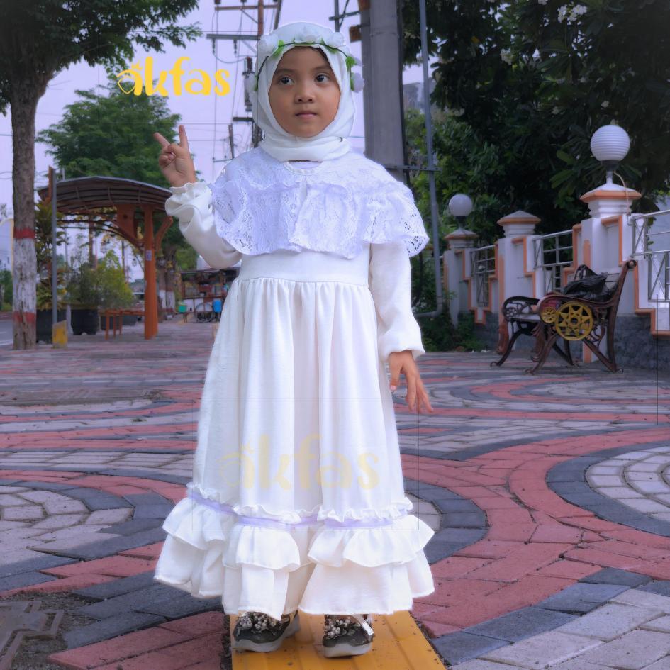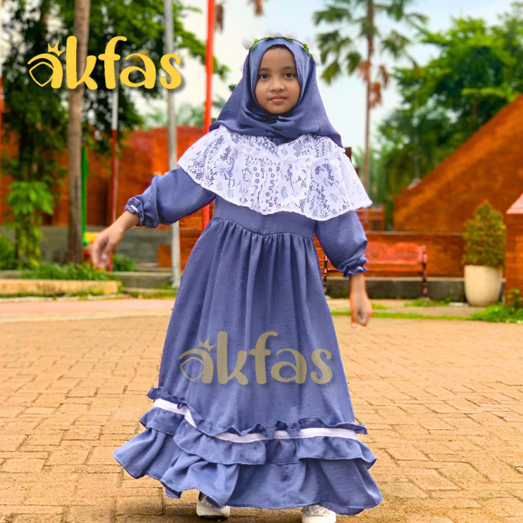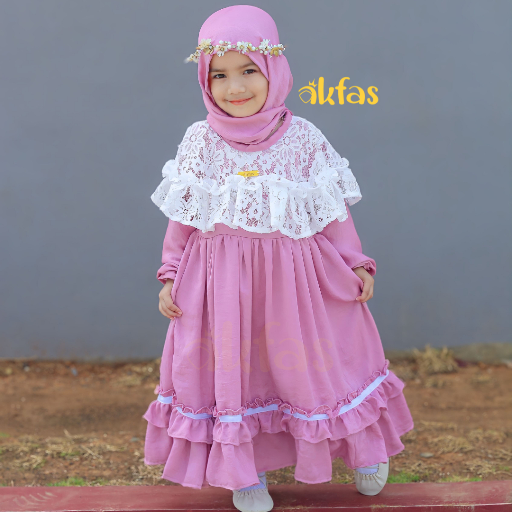 AKFAS - Gamis Anak Perempuan Cantik dengan Bahan Santorini Silky Ruffle & Brokat – Dress Muslim Anak Syar’i Bahan Adem