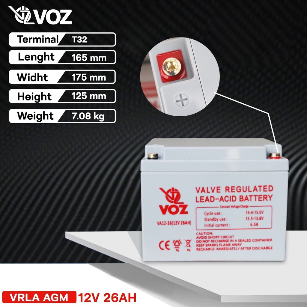Aki 12V 26 Voz 12V 26 Ah | Aki Kering | Aki UPS | Aki Solar cell VRLA - Aki Kering VRLA 26 Ah
