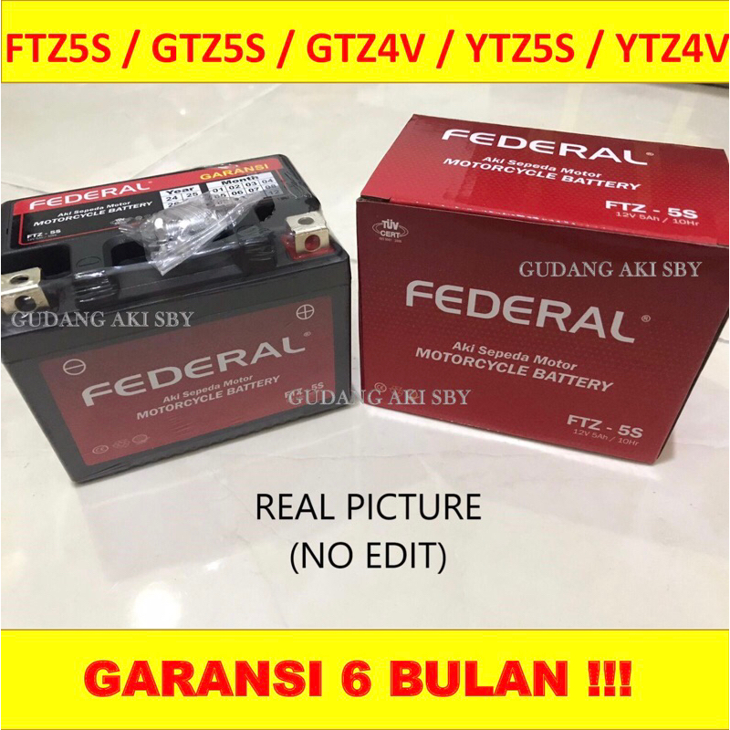 Aki Motor FEDERAL Honda Beat Vario 110 Scoopy Supra X 125 Revo Spacy Blade New Mega Pro Verza CRF Genio Aki Kering NANO-GEL Accu Full Kering MF GTZ5S / FTZ5S