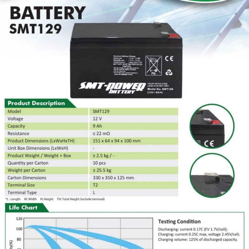 Aki UPS SMT POWER 12V 9AH Baterai UPS/ Deep Cycle/VRLA/Baterai UPS
