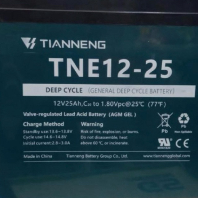 Aki tianneng TNE12-25 12volt 25ah 6dzm20 kepala baut original. Baterai Sepeda listrik / Motor Listrik Deep cycle Tian Neng TNE 12-25 12V 25Ah [ Ten Nex TNE 12-25 ]