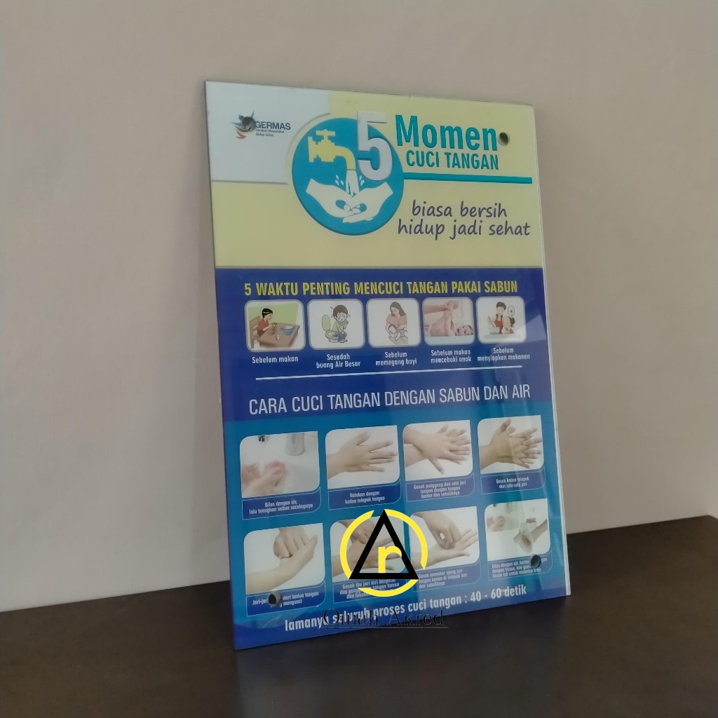 Akrilik 5 Momen Cuci Tangan RT - Cara Cuci Tangan Rumah Tangga - Akrilik Kesehatan
