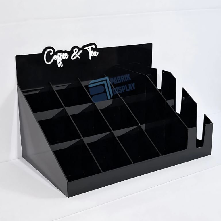 Akrilik Display Kopi Sachet dan Cup Kopi (12 slot Kopi Sachet & 3 Slot Cup kopi )