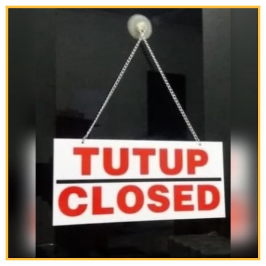 Akrilik Open Close Pintu / Papan Open Close / Buka Tutup Akrilik (Dua sisi/Bolak Balik, Rantai, Kop Kaca)