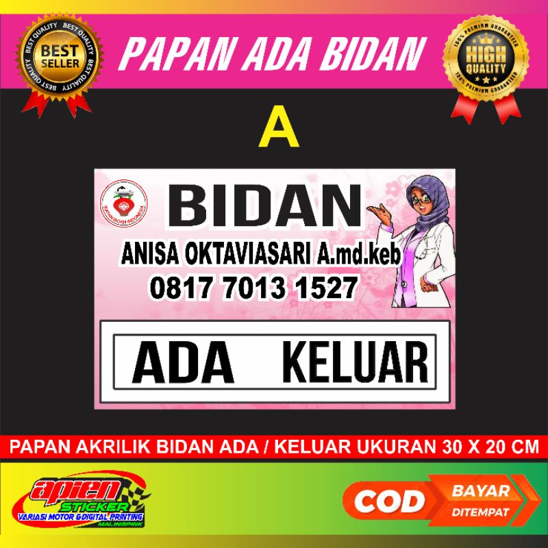 Akrilik Papan Keterangan Ada Bidan (ADA BIDAN/BIDAN KELUAR)