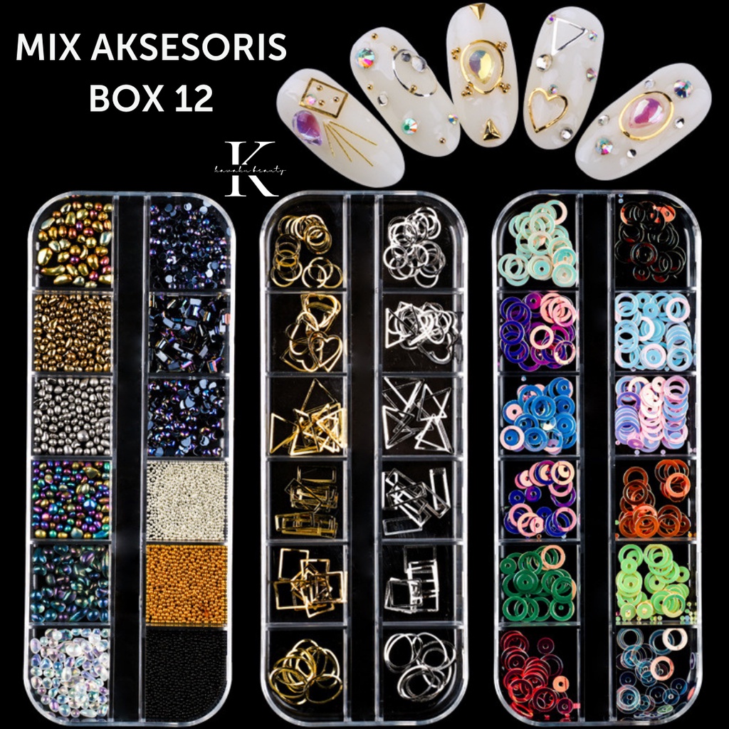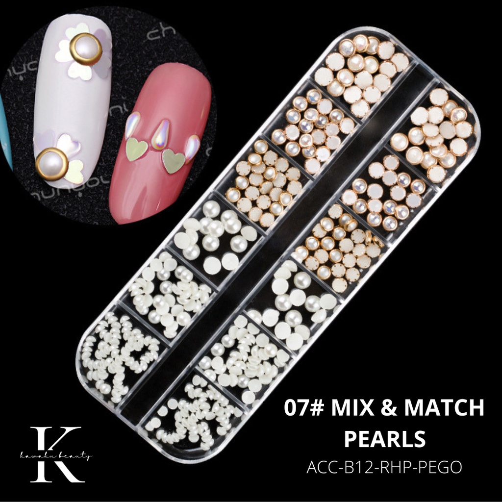 Aksesoris Hiasan Nail Art kuku palsu manik-manik sequins pearl mix silver gold / Nail art DIY