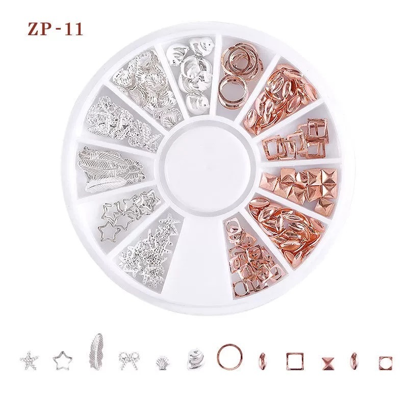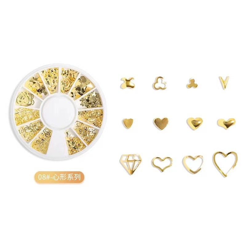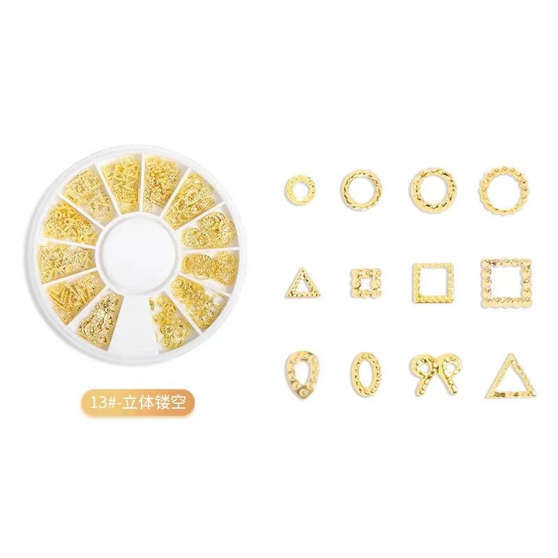 Aksesoris Nail art Hiasan kuku 3D Gold Mix shape 12 kolom dalam 1 Roll
