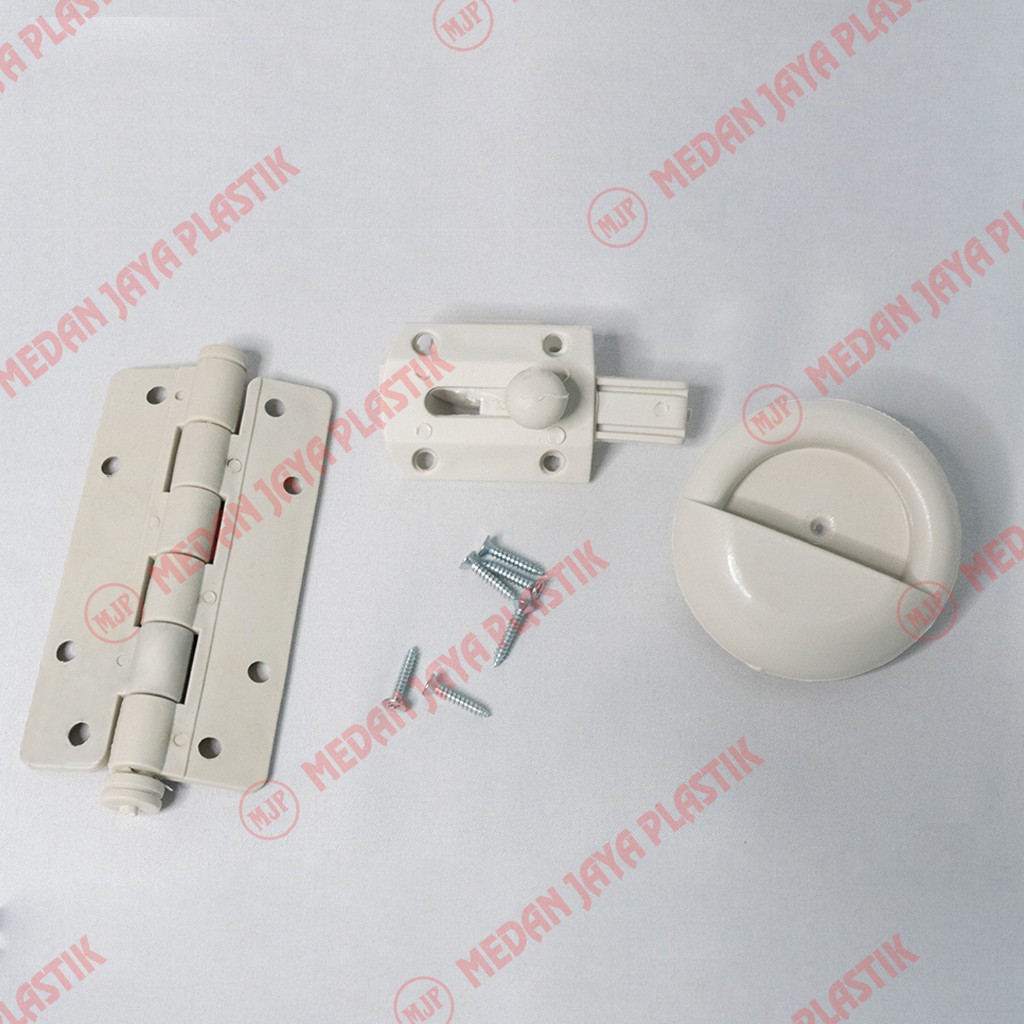 Aksesoris Pintu Kamar Mandi PVC (Grendel/Gerendel PVC, Handle Pintu PVC & Engsel Pintu PVC)