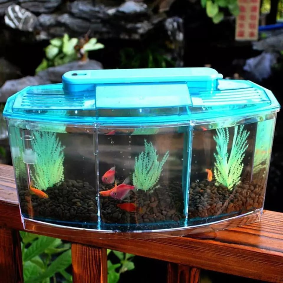 Akuarium Breeding Box LED 3 Sekat Aquarium Ikan Cupang Hias Guppy Aquatic Tangki Betta